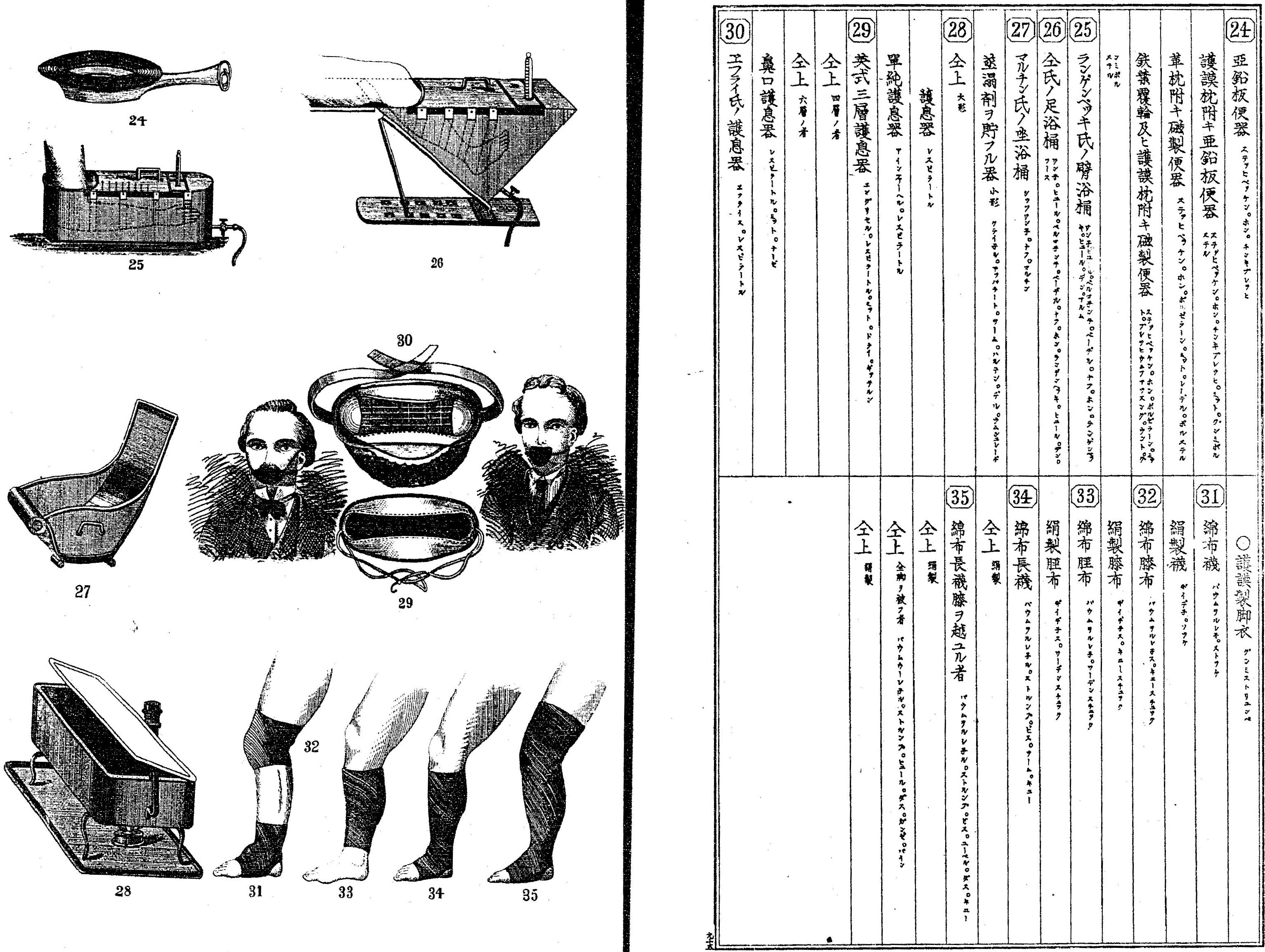 Figure 2. Respirators in Meiji Japan. (Top: Matsumoto Ichizaemon eds., Iryōkikai Zufu, 1878, pp. 95–96; Bottom: Marumaru Chimbun, April 26, 1879, p. 1863.)